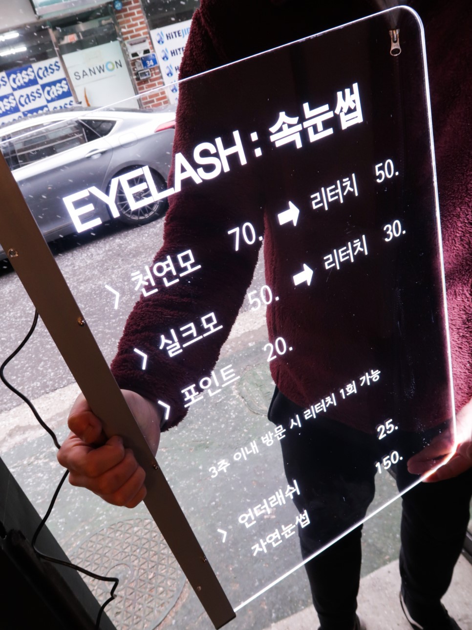 아래는 LED 아크릴 사인 제작 시 선택 가능한